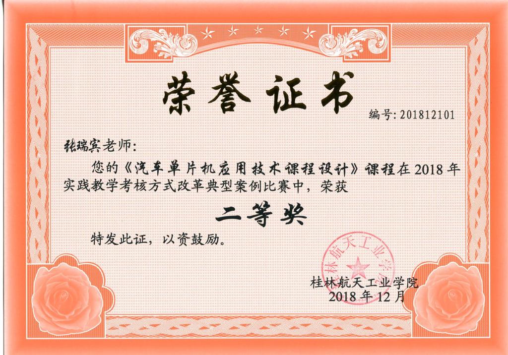 我院教师张瑞宾在2018年实践教学考核方式改革典型案例比赛中荣获二等奖