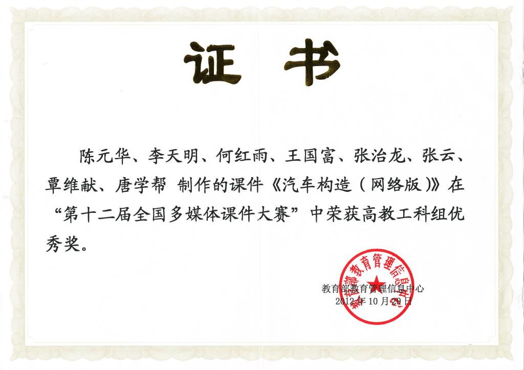我院陈元华等老师制作的课件在第十二届全国多媒体课件大赛中荣获高教工科组优秀奖