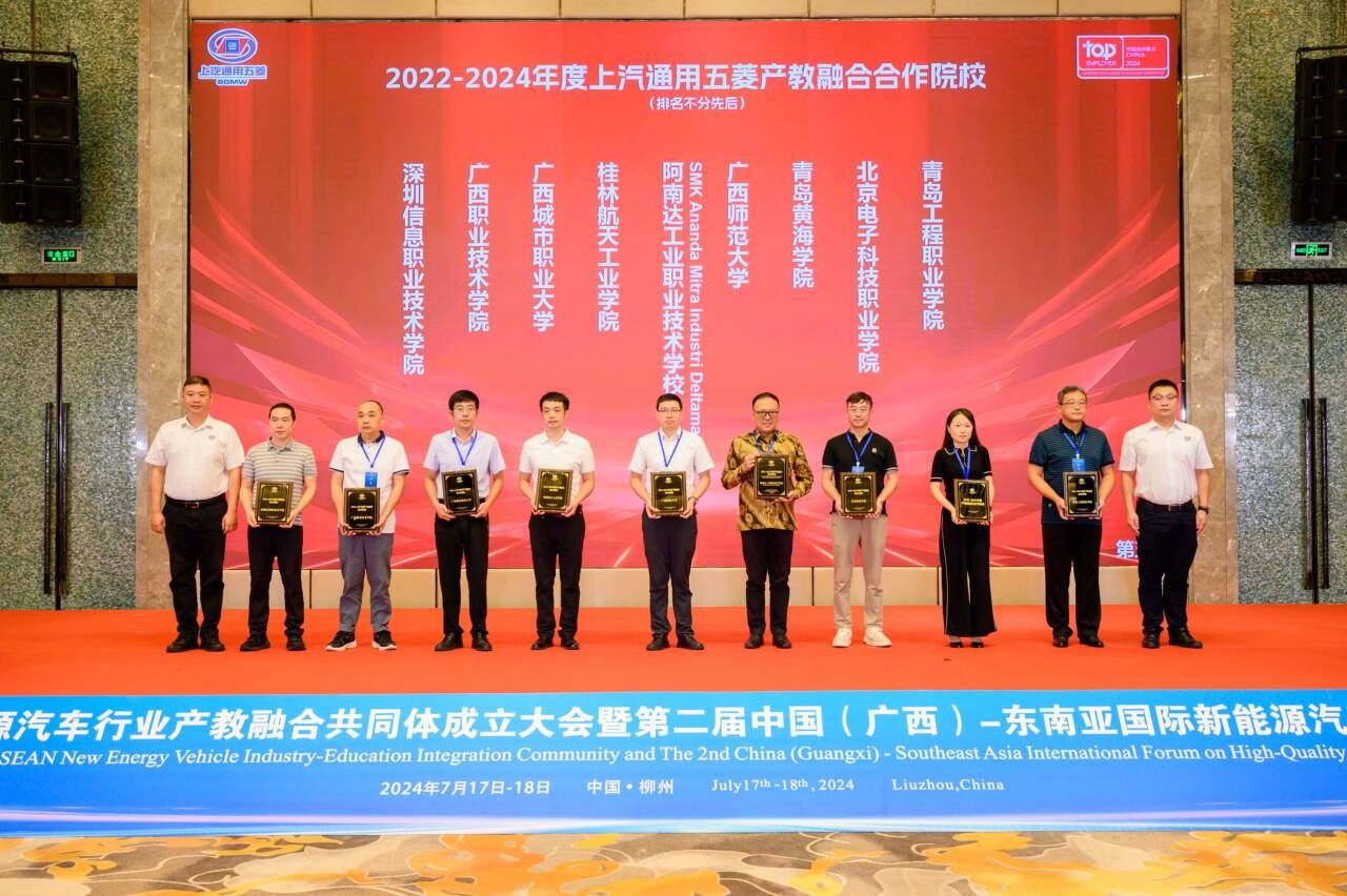 会议期间,来自国内外的行业精英、学者专家齐聚一堂,就新能源汽车产业发展、技术创新、国际合作及产教融合等主题进行深入探讨和广泛交流。我校也入选中国—东盟新能源汽车行业产教融合共同体会员单位并获评为上汽通用五菱股份有限公司2022-2024年度产教融合合作院校。