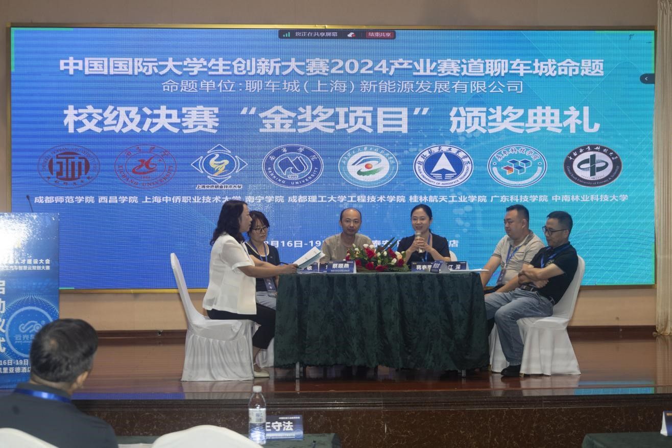 《教育部中国国际大学生创新大赛(2024)产业赛道聊车城命题》论坛暨校级决赛“十项金奖项目”颁奖典礼上,优秀指导教师深度剖析答题策略与项目方案,并分享全国大学生汽车智慧云双创大赛2023 年全国总决赛团队培育的优秀项目入围该命题的宝贵实战经验。此次校级决赛中,8所高校的10个杰出项目脱颖而出,获 “校级决赛金奖表彰”,并成功晋级产业赛道省级赛。刘亚琴常务副秘书长为优秀师生团队颁发“校级决赛金奖项目”证书,以此对他们的突出表现予以表彰。