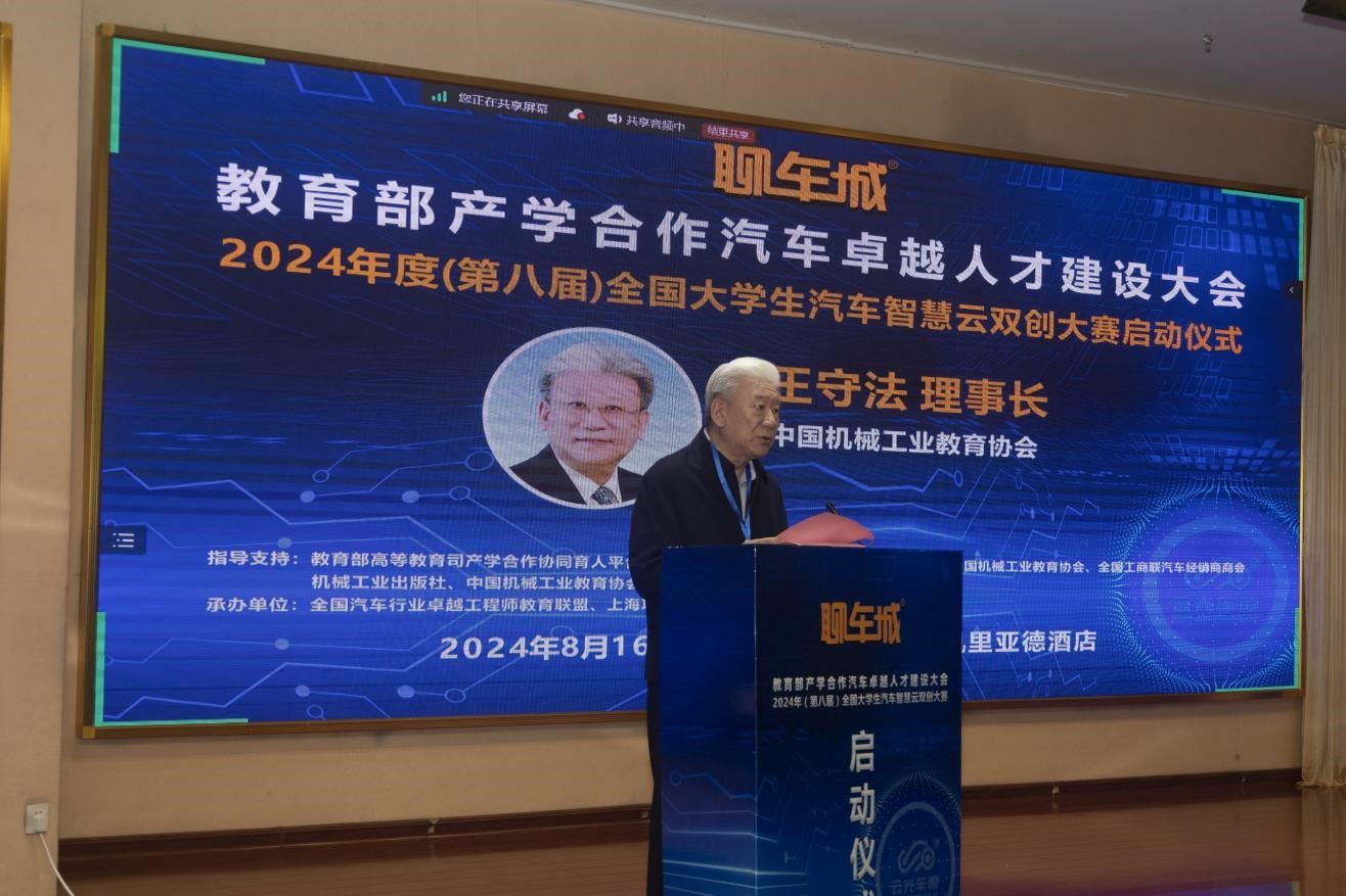 会上,王守法理事长与刘亚琴常务副秘书长同与会专家学者共同启动了中国机械工业教育协会主办,全国工商联汽车经销商商会、机械工业出版社支持,中国机械工业教育协会汽车服务工程专业委员会、上海巧园投资发展有限公司承办的《2024年第八届全国大学生汽车智慧云双创大赛》。本届大赛由汽车金融管理师、二手车鉴定评估师、新能源汽车工程技术师三大团体赛项组成,依托聊车城智慧云平台,实现理论与实践的深度融合。大赛旨在全面提升师生的创新实践与创业能力,并展示教学成果,加速学术成果向产业转化。大赛培育的优秀汽车项目,聊车城(上海)新能源发展有限公司将重点推荐其晋级由教育部、中央统战部等 13 个部委联合主办的中国国际大学生创新大赛 2025 年汽车产业赛道,为培养更多具有创新精神和实践能力的汽车卓越工程师人才搭建广阔平台。